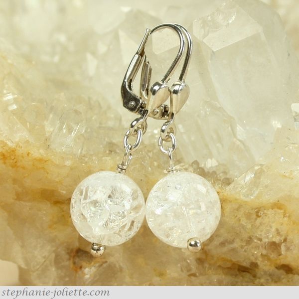 SIKRI029-434OSI / Ohrhänger (925er Sterlingsilber), Bergkristall (Kugel 10 mm), Größe (32 mm lang, 10 mm breit) / 29.- €uro